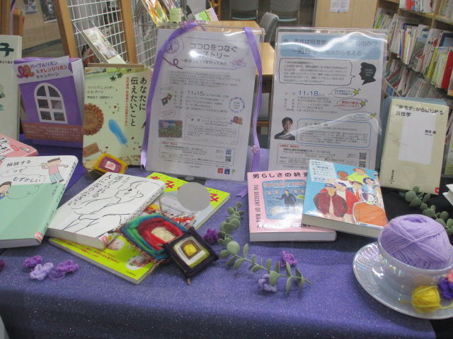 テーマに合わせて展示しています。男女共同参画センターへお気軽にお立ち寄りください。